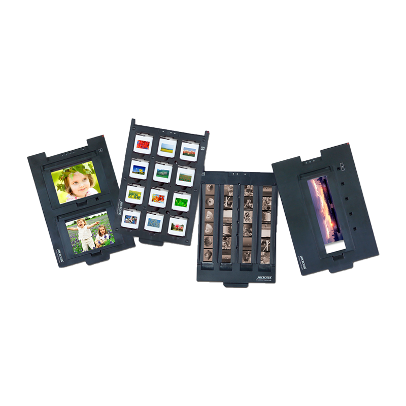ScanMaker i850內(nèi)置透掃適配器,最大可掃描8x12英寸的透射稿件。支持4種EZ-Lock片夾:135(35mm)幻燈片片夾、4x5英寸膠片片夾、135(6聯(lián))膠片片夾、120(最大6x22cm)膠片片夾,方便客戶操作使用,且取得清晰的影像。
